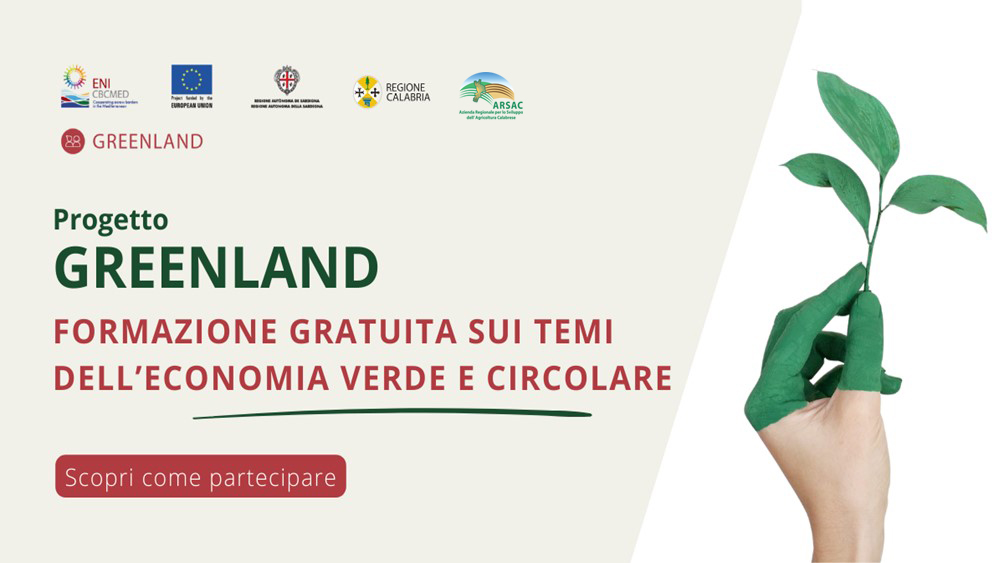 Il progetto ENI CBC MED GREENLAND (GREEN-skills for a sustainable Development) è un’iniziativa di Cooperazione Territoriale Europea di cui la Regione Calabria è capofila, partecipando insieme ad altri Paesi del Mediterraneo (Libano, Giordania, Egitto, Palestina, Portogallo, Grecia).